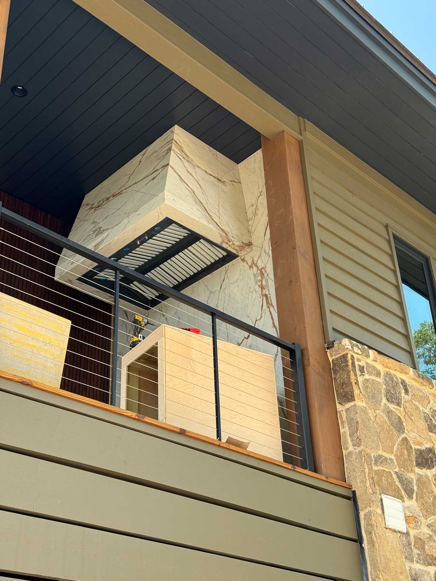 As a one-stop shop, we're ready to assist and prefer to help with prep work. It's essential in the project's process to have square edges and a flat, plumb surface before installing the large-format porcelain.
